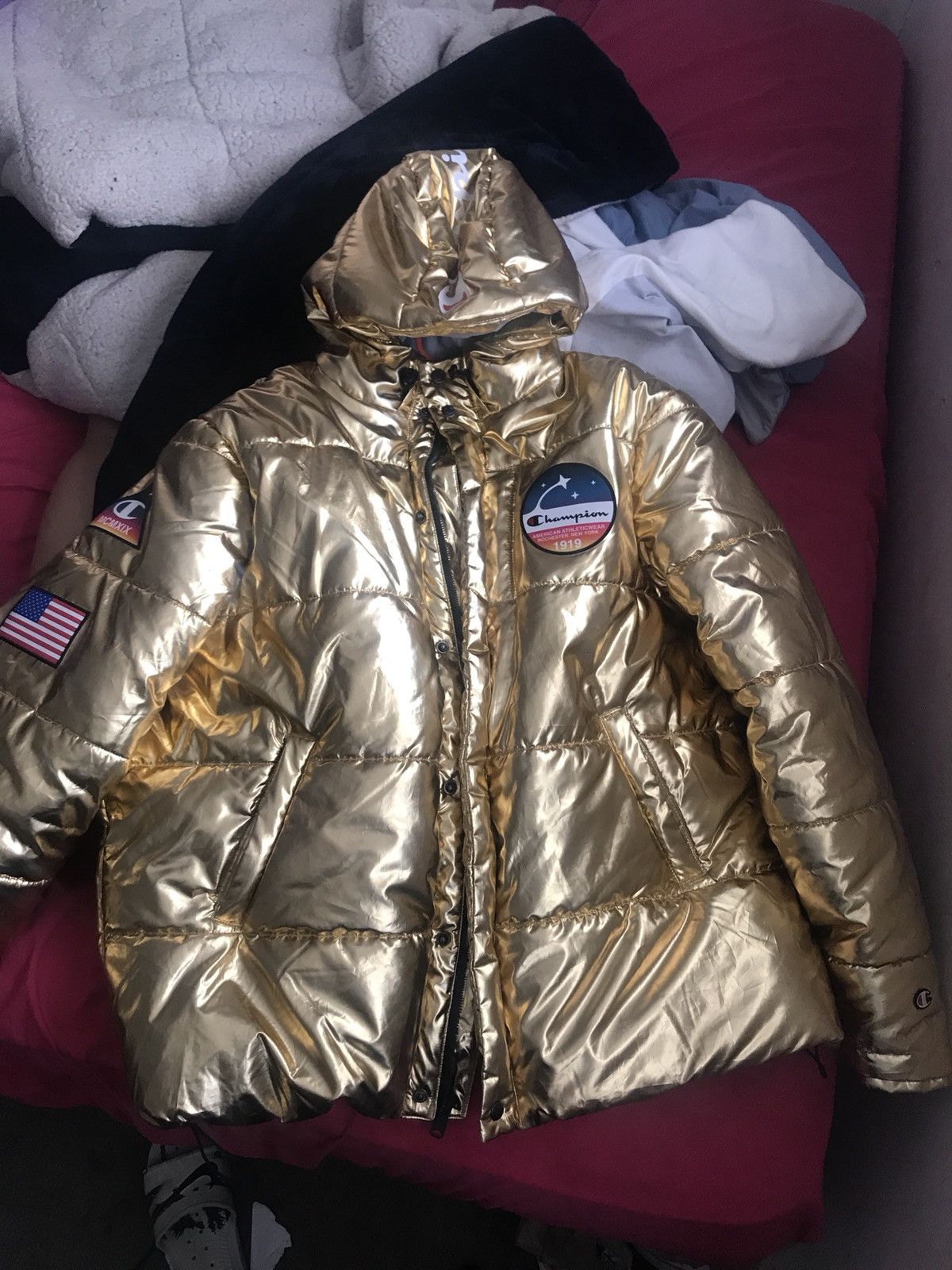 Product Name: Champion metallic gold puffer jacket store