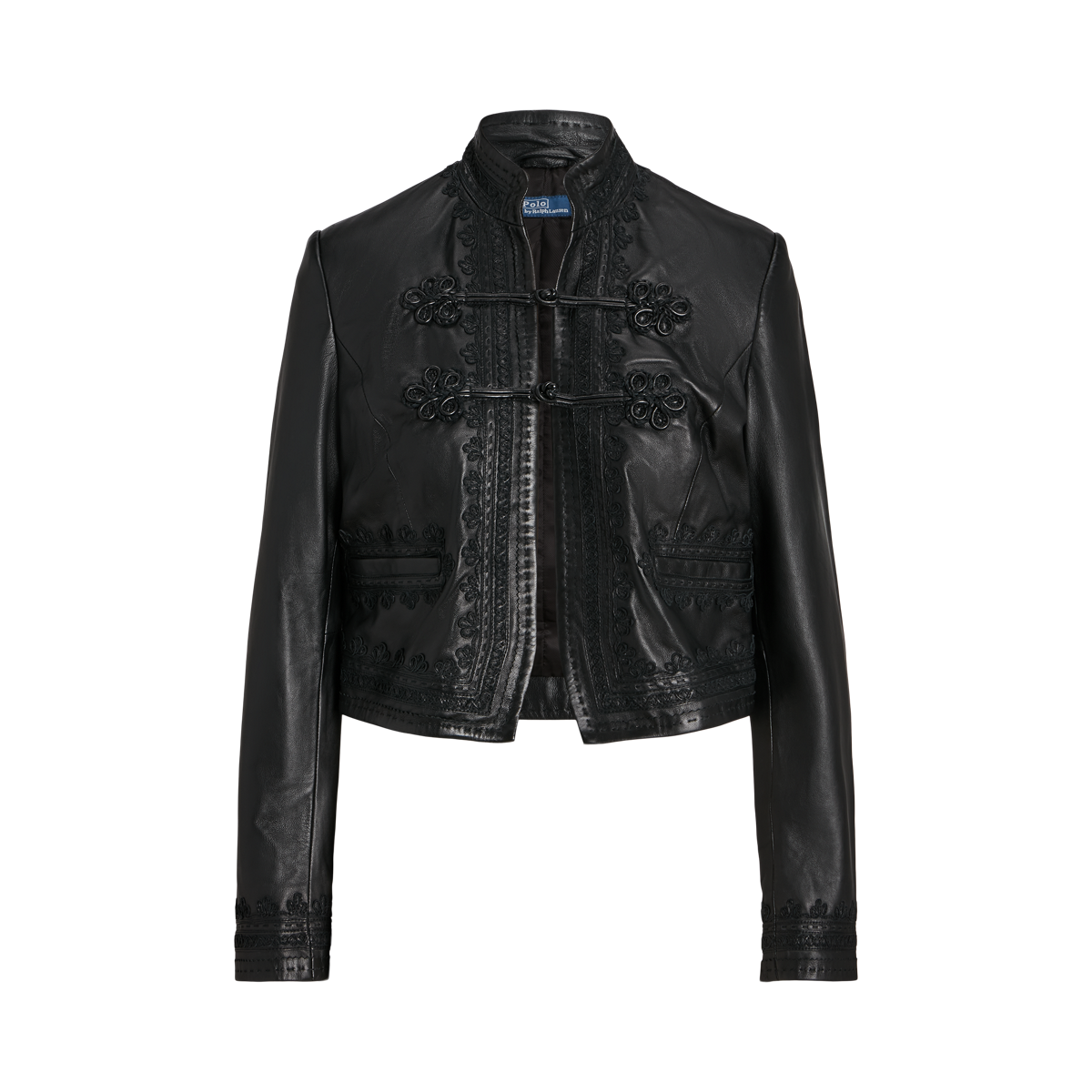 Product Name: Embroidered black leather jacket store